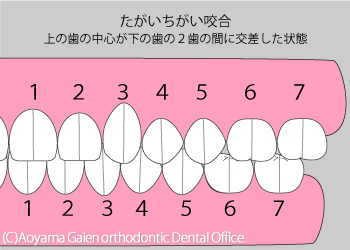 装置使用後の写真です。犬歯の位置関係が改善し、「たがいちがい咬合(※図2)」になりました。