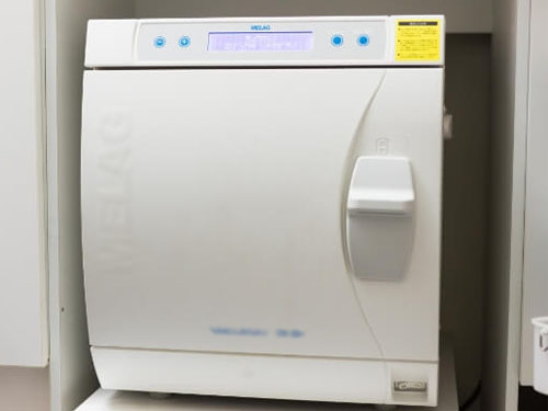 高圧蒸気滅菌器の性能は3つのクラスに分類されており、滅菌を行える器具の範囲が異なります。当院ではそのクラスの中で基準が一番高いクラスBの滅菌機を使用しています。