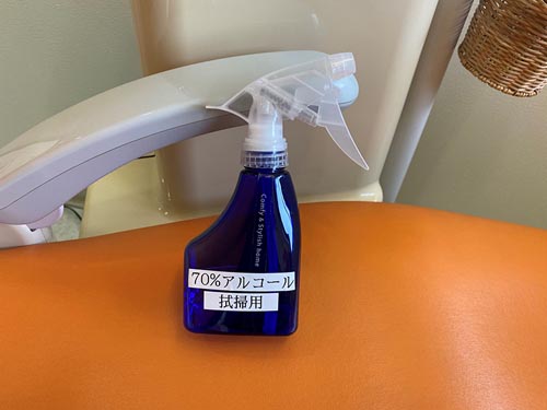 診療後は患者様の使用した歯科用チェアーを毎回、消毒用アルコールにて適切に処理しています。