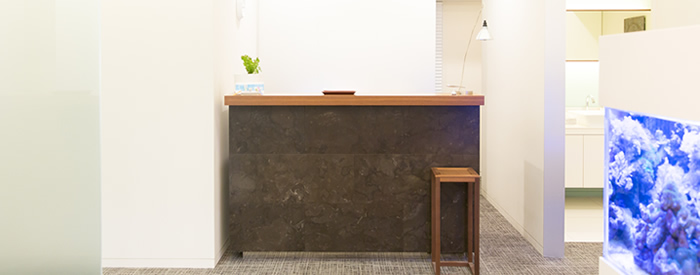 1階の総合受付と、2階の「審美・インプラントセンター」の受付がございます。ご不明な点などございましたら、気軽にお立ち寄りください。