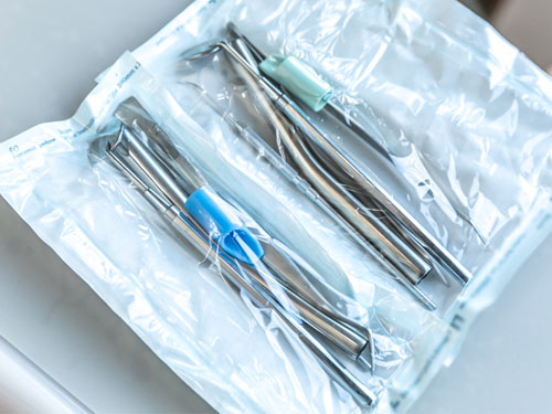 診療で使用するピンセット等の器具は一式、患者一人ひとり個別に滅菌パックしたものを使用しております。