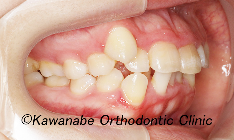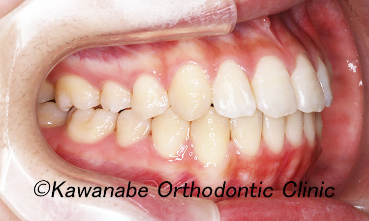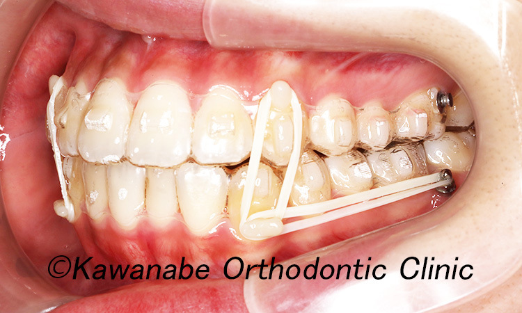 また、初診時に口唇の突出が認められたため、上下顎中切歯の舌側移動を行いました。