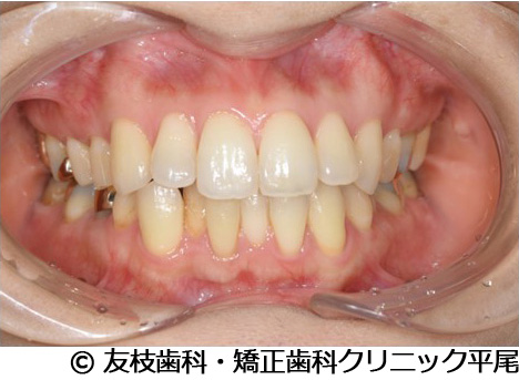 上下ともガタつきがなくなり、綺麗な歯列弓になりました。噛み合わせも良くなりました。