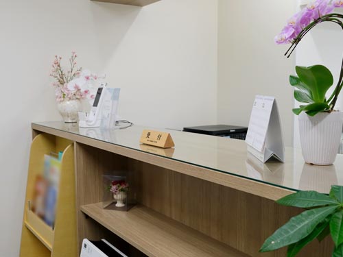 受付では笑顔でお迎えし、丁寧な対応を心掛けています。ご予約やご質問など、お気軽にお声掛けください。