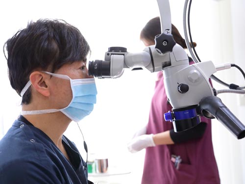 マイクロスコープは歯科治療用の顕微鏡で、口腔内を高い倍率で拡大した状態で確認できます。