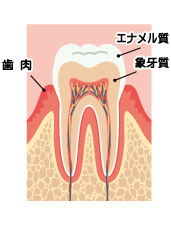 高齢者の歯は、エナメル質にとどまらず、象牙質に至ることが多くあります。
