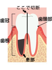 保存が不可能な場合に、悪くなった歯根だけを歯冠部を含め、切断除去する治療法。
