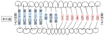 人の歯の数は乳歯では20本、永久歯は28本(親知らずを含めると32本)です。